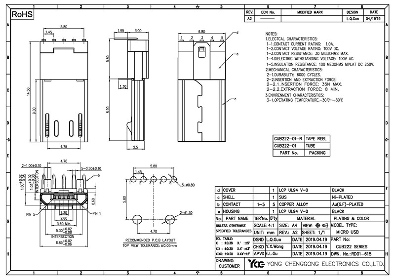 MICRO USB B TYPE 5P MALE PLUG BLACK