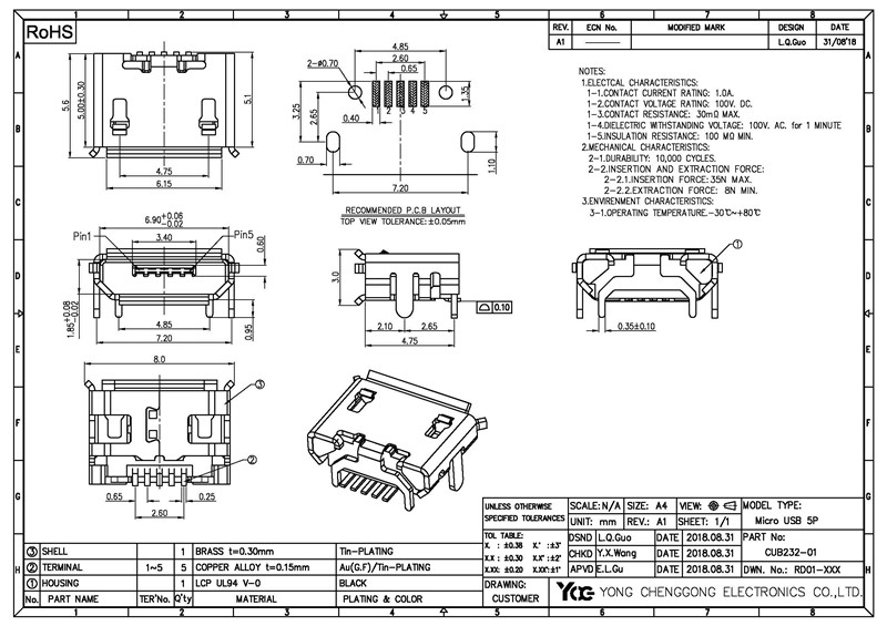 CUB-232 MICRO USB B TYPE SMD 5P BLACK