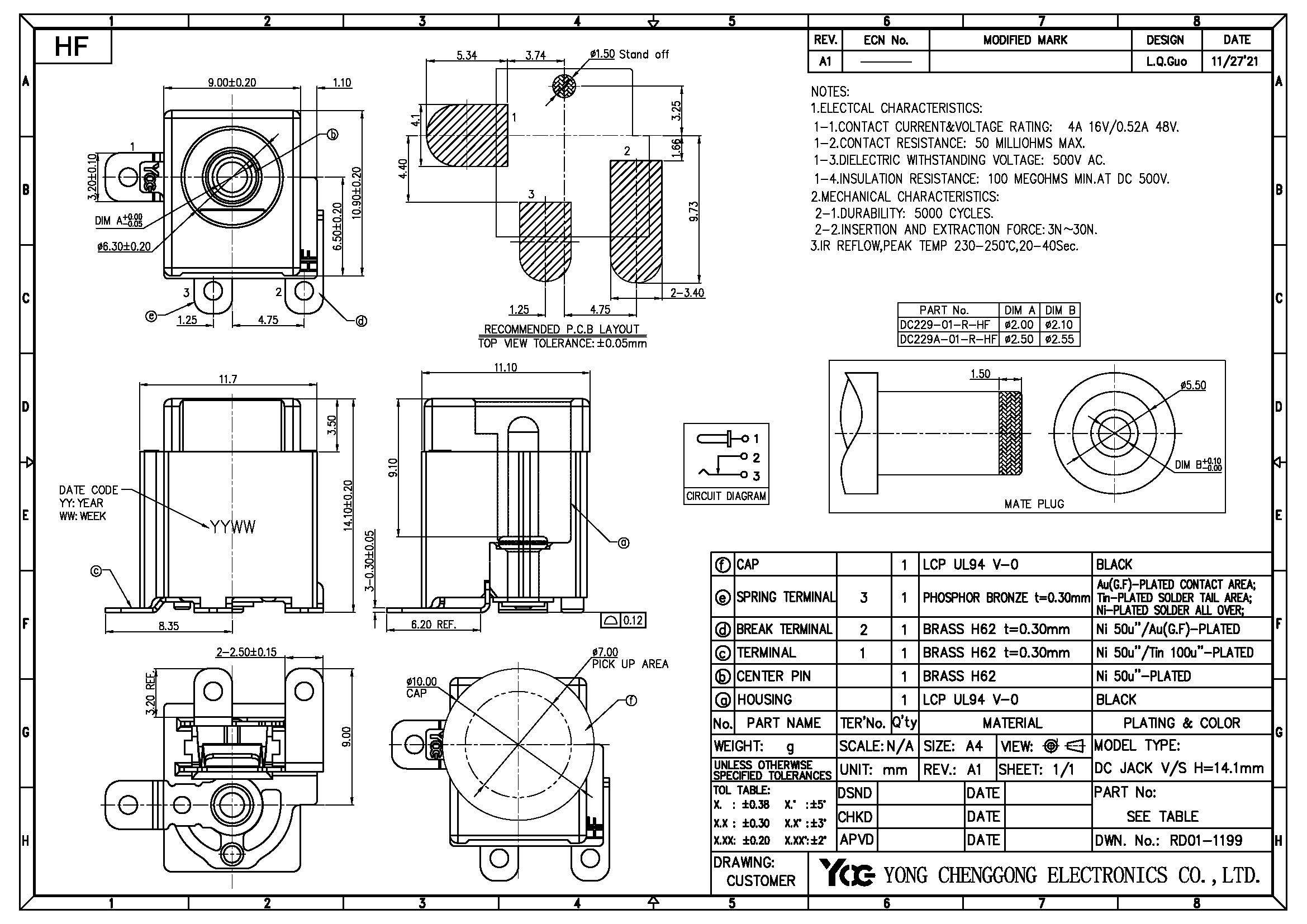 DC229 DC POWER JACK,φ2.5mm,V/T PIP