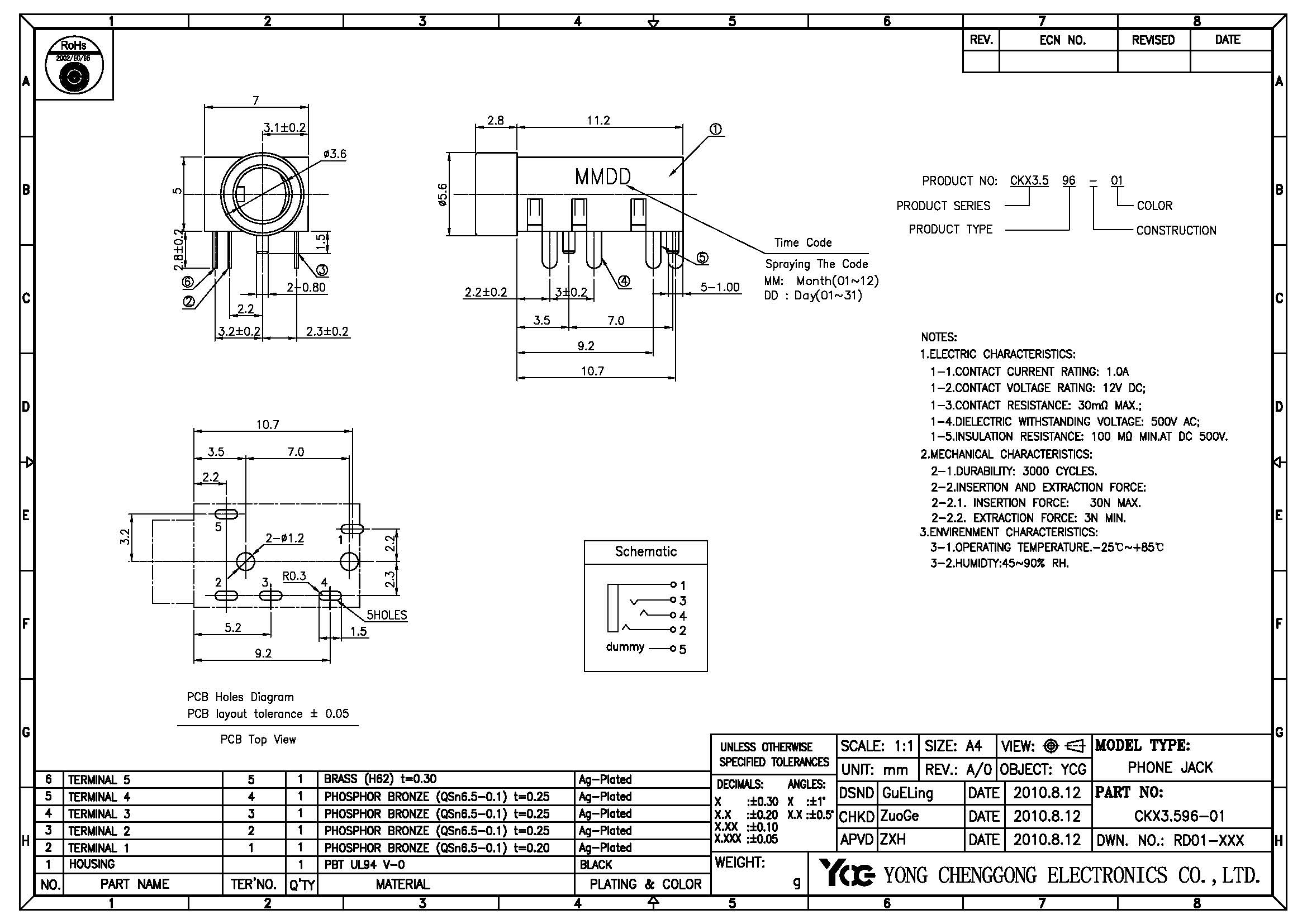 CKX3.596 PHONE JACK φ3.6mm,R/D,CH9.60mm,4 Poles,BLACK