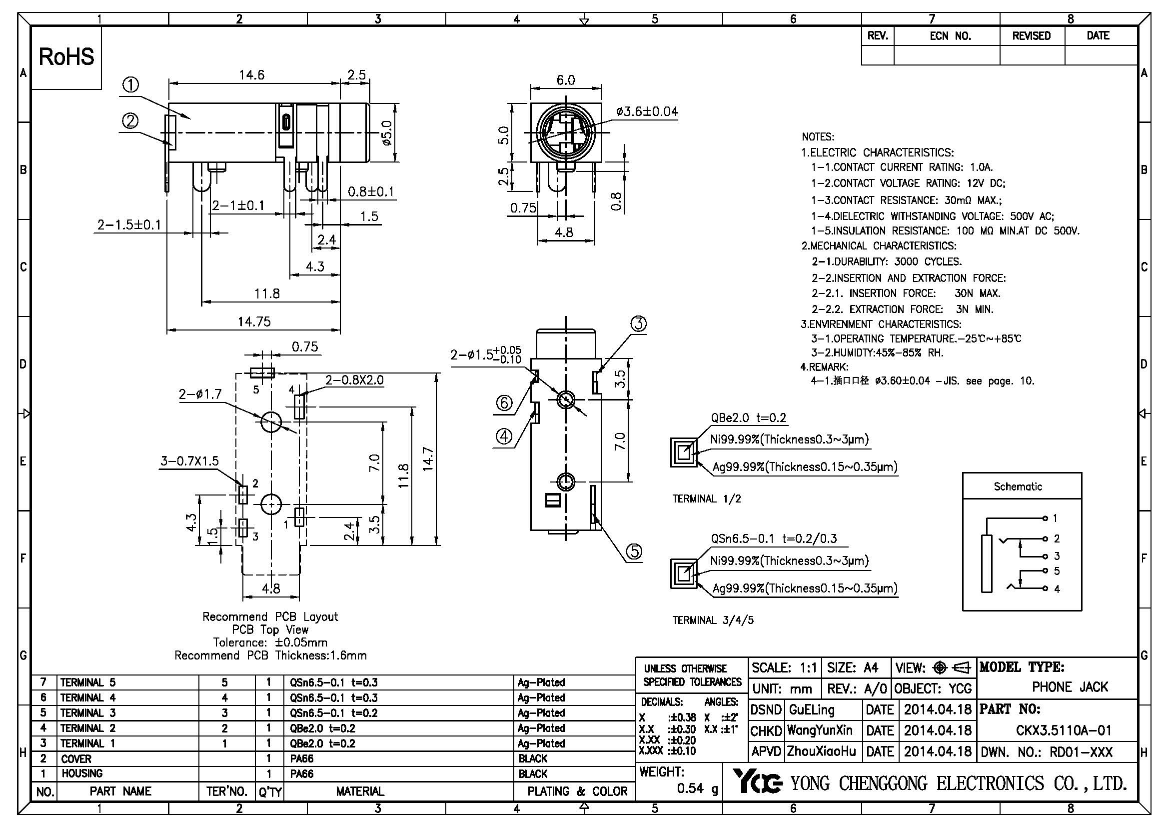 CKX3.5110 PHONE JACK φ3.6mm,R/D,CH2.5mm,3 Poles,BLACK