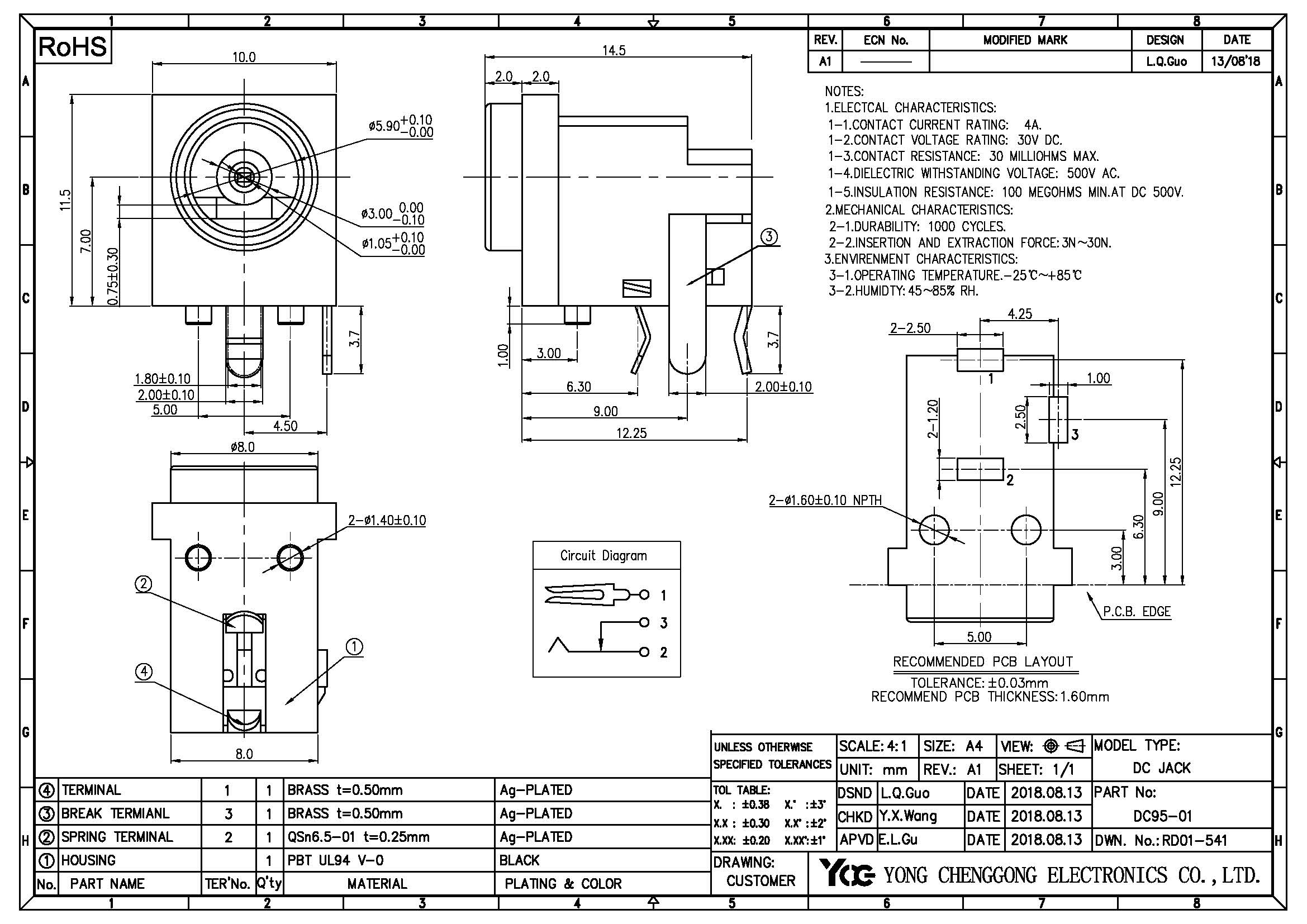 DC POWER JACK, R/A DIP