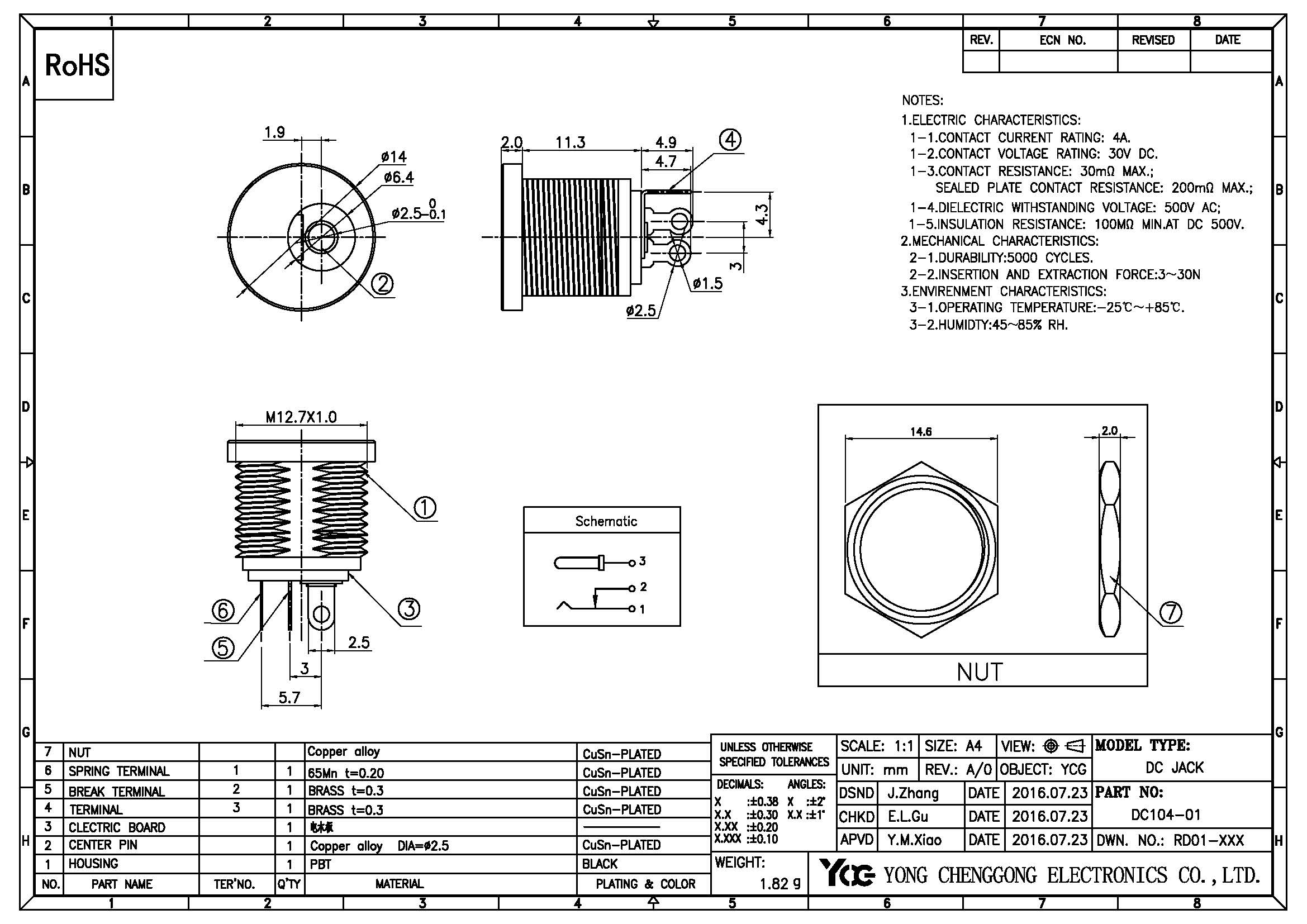 ,2.50mm,H11.3mm, WITH NUT M12.7*1.0