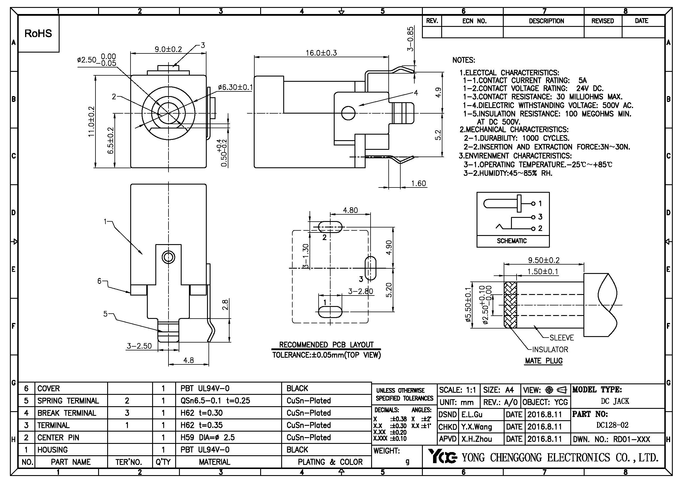 φ2.50mm,φ3.00mm,V/D ,H16.0mm