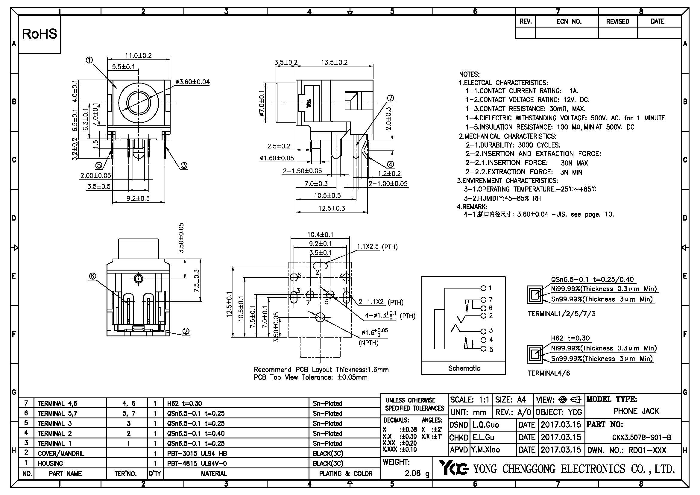 PHONE JACK φ3.6mm,R/A,DIP,BLACK&WHIE