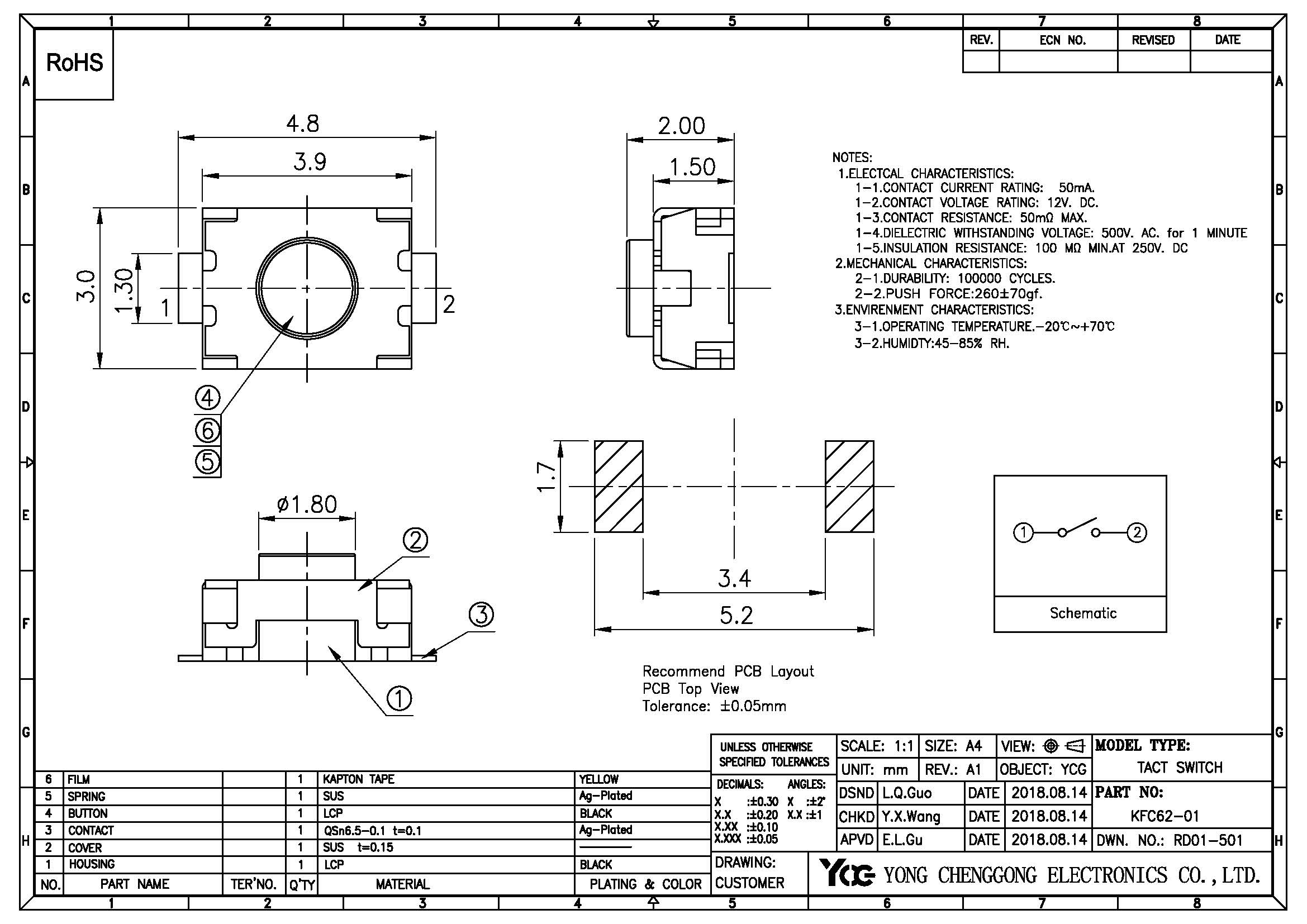 TACT SWITCH V/S,H2.0mm,160gf/260gf±50gf
