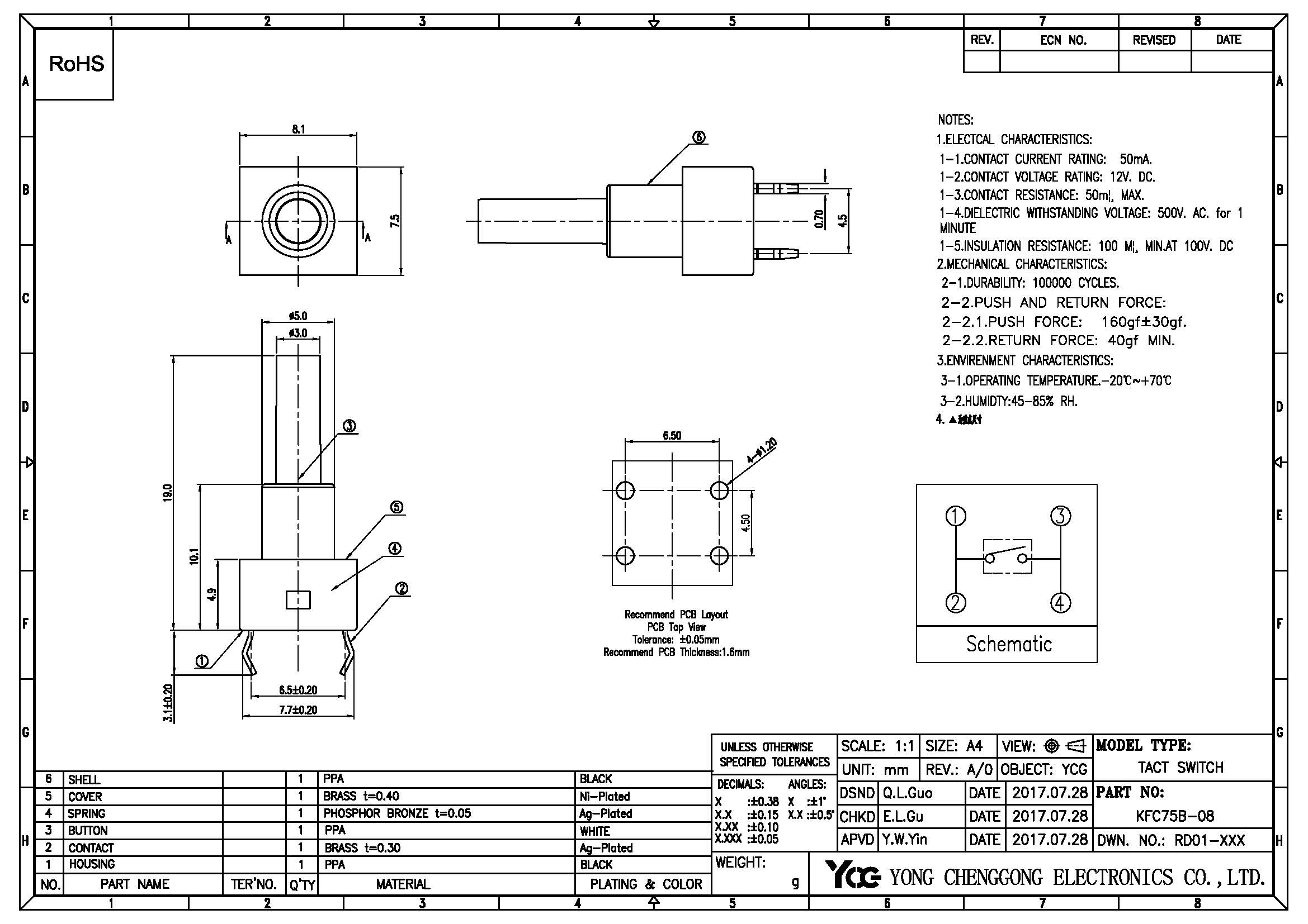 TACT SWITCH V/D,H10.0mm~H20.0mm, 160gf±50gf