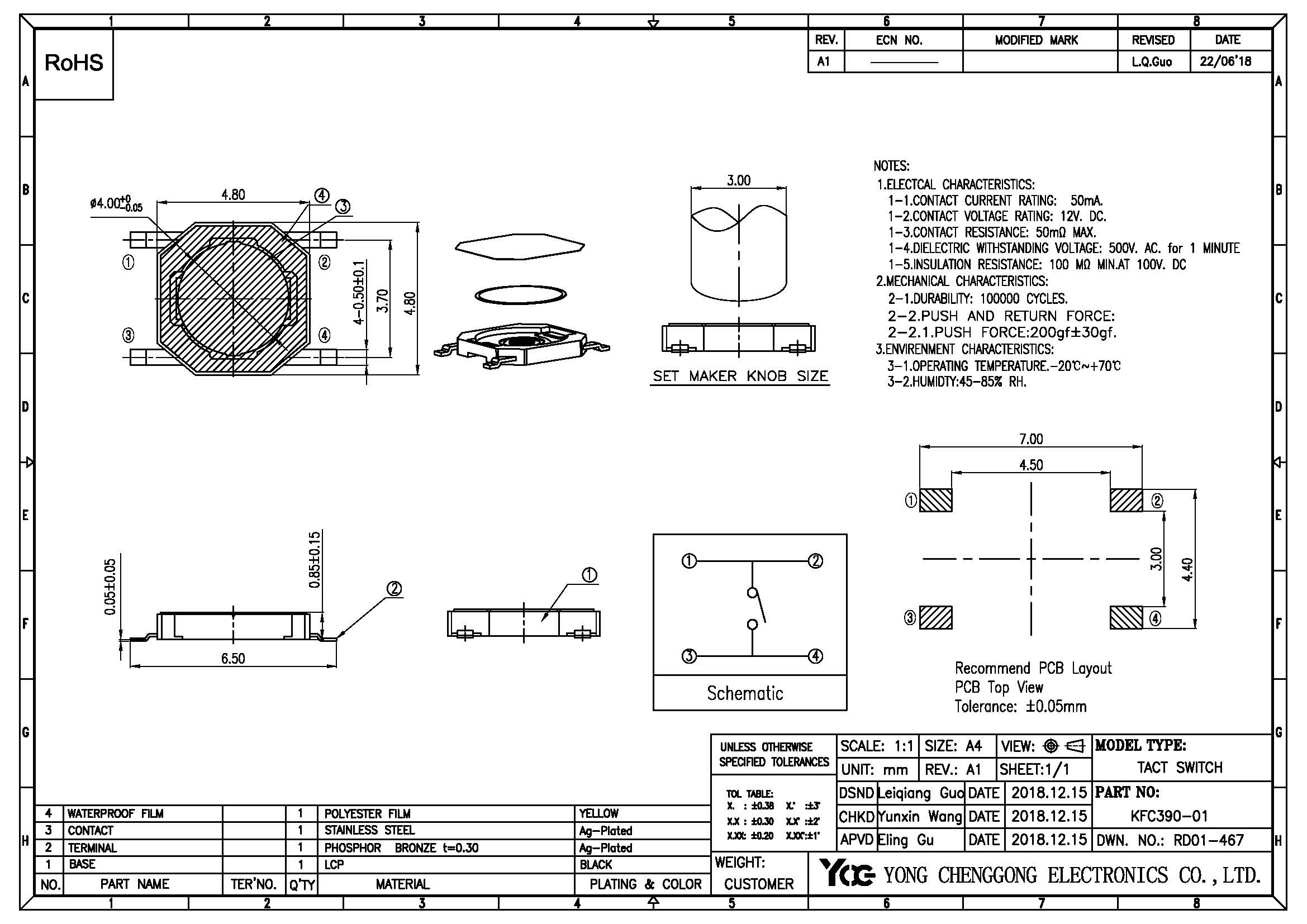 TACT SWITCH V/S,L4.8*W4.8*H0.85,200gf±30gf